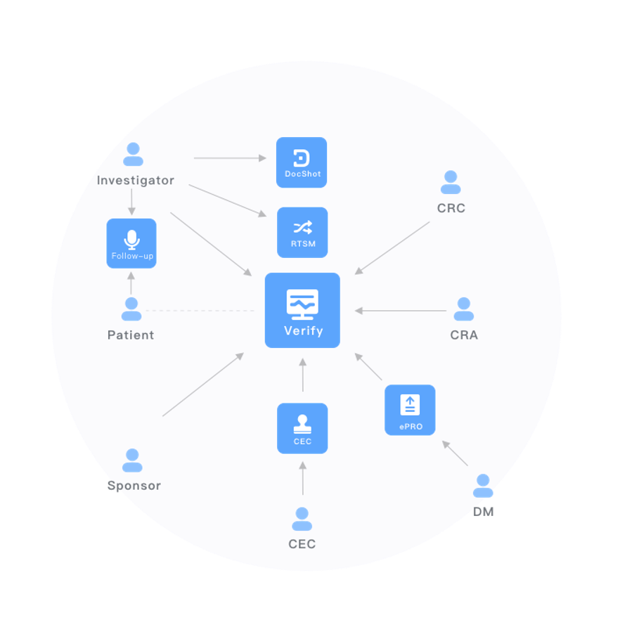 PI、CRC、CRA、PM、DM、CEC... 參與試驗的各個角色均面向系統(tǒng)工作,所有試驗過程均被系統(tǒng)完整的記錄。定制化的開發(fā)滿足了各個角色的工作需要。